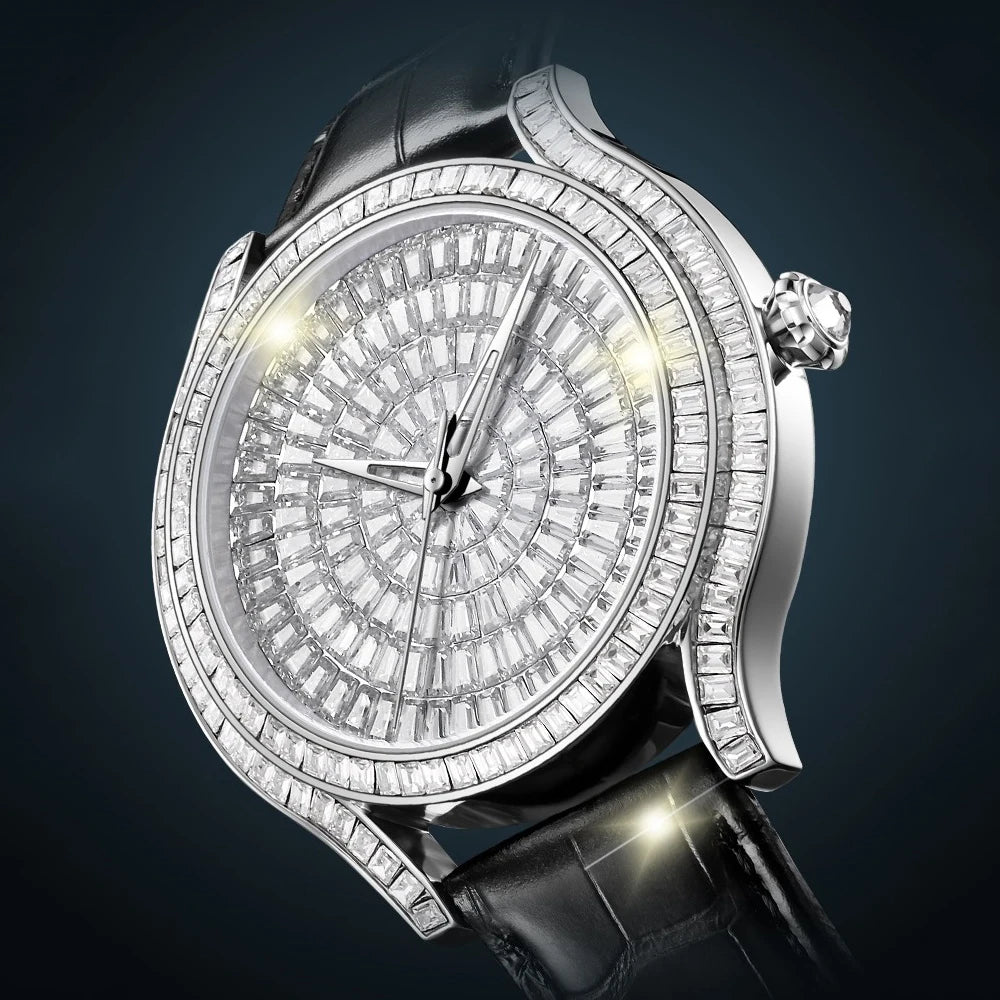 ⌚ ساعة رجالية فاخرة – تصميم ملكي مرصّع بالكامل