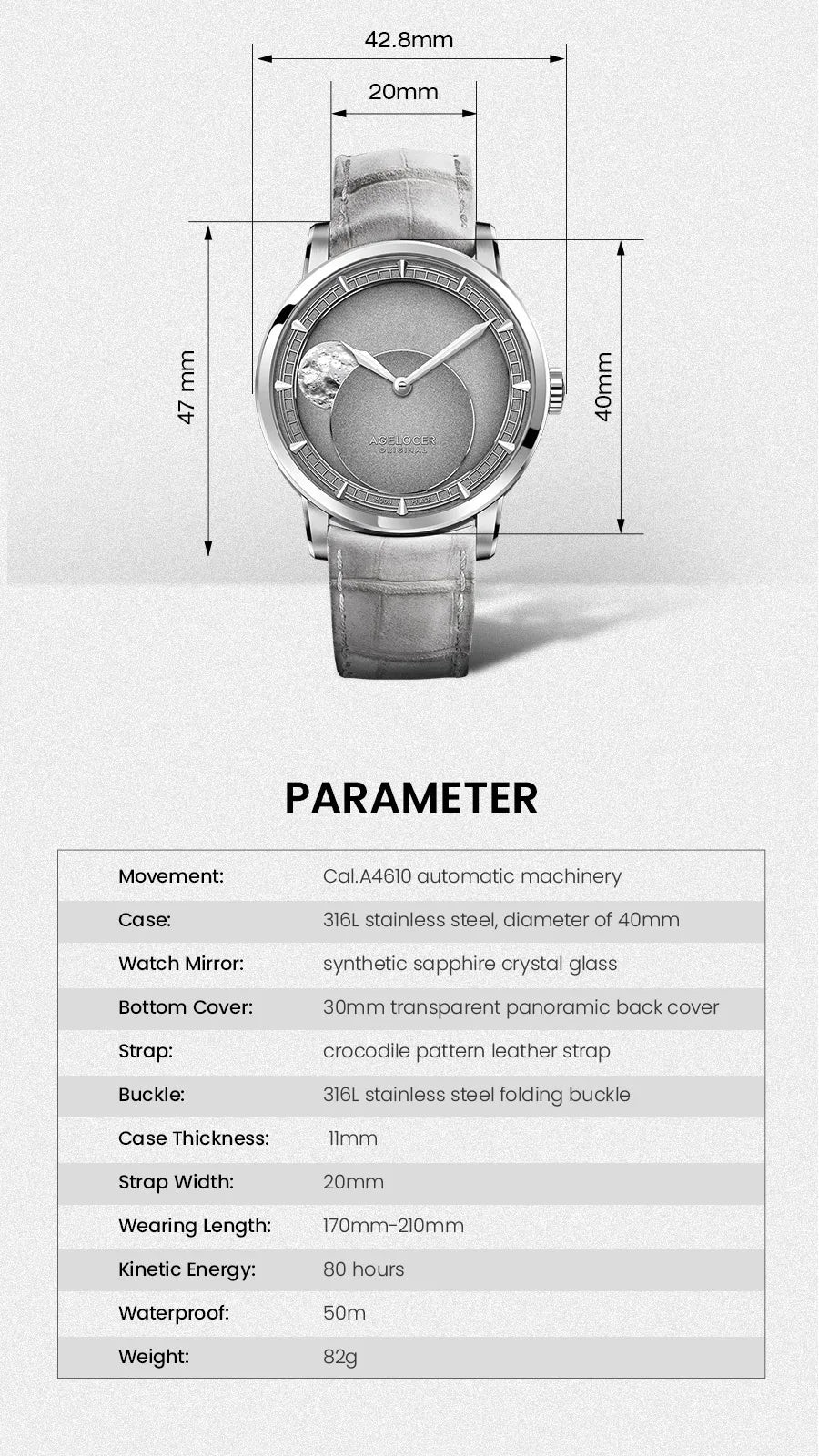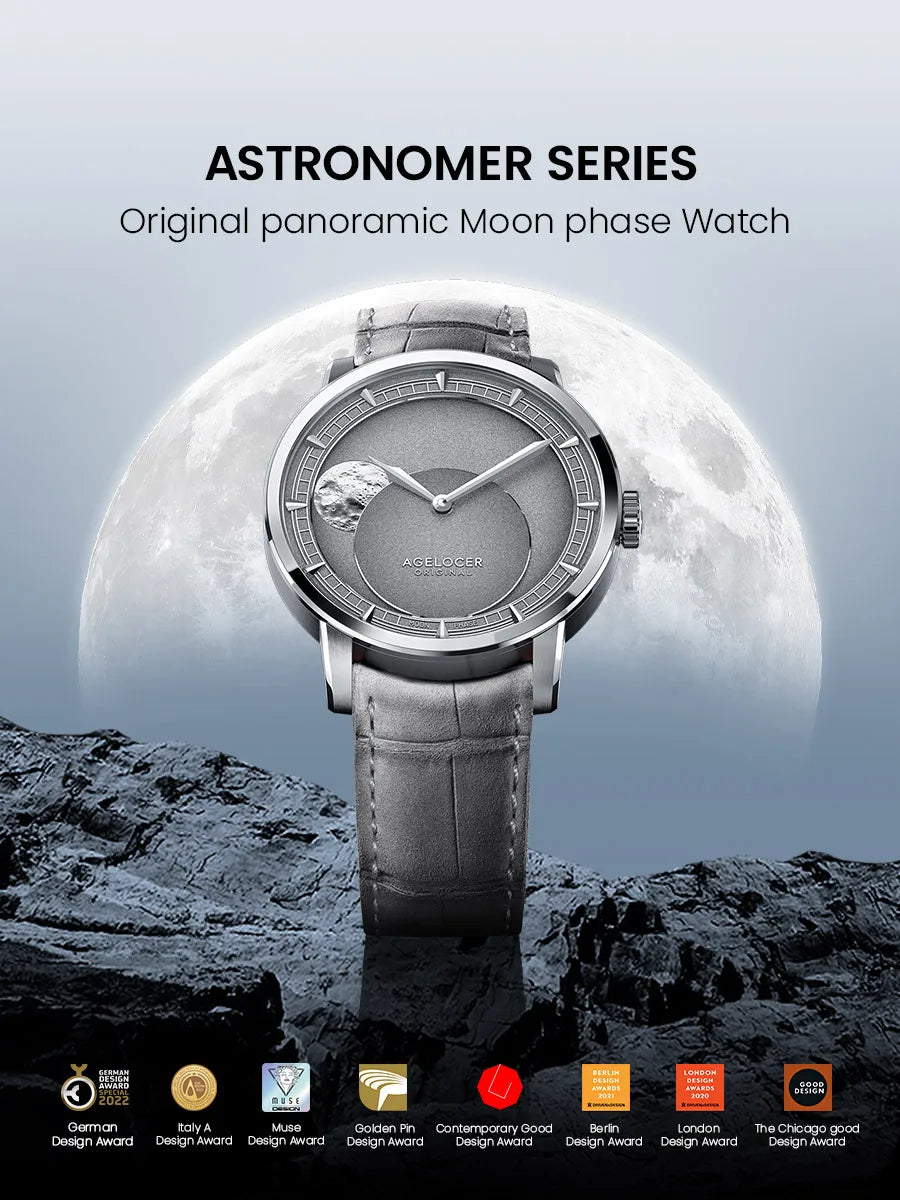 ساعة AGLOCER أوتوماتيك – عرض مراحل القمر 🌙⌚