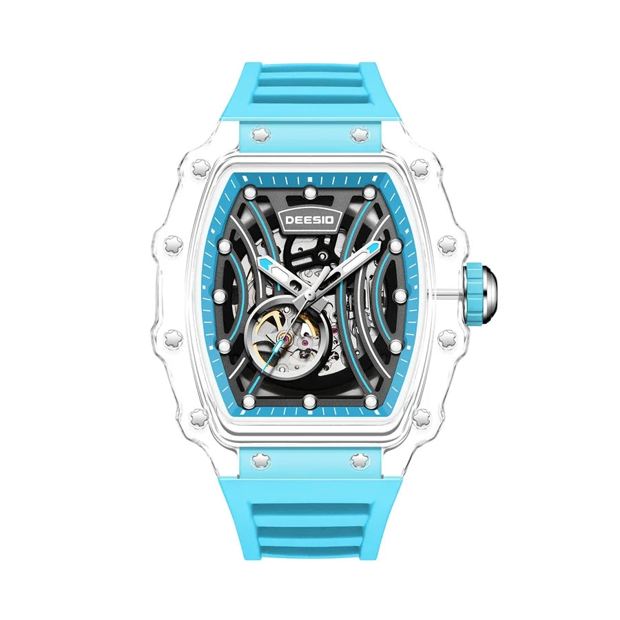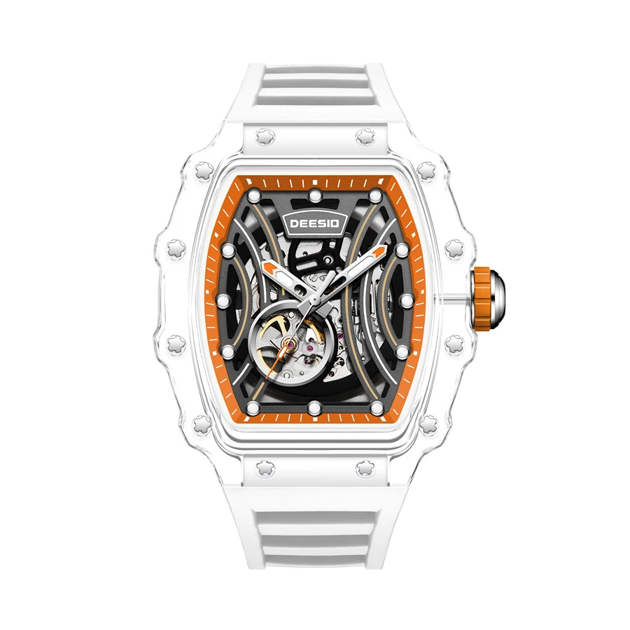 تجمع بين الهيكل الشفاف والمظهر العصري، لتكون قطعة تخطف الأنظار وتليق بالمناسبات اليومية والحفلات، كما تُعد هدية مثالية لعشاق الساعات الفريدة