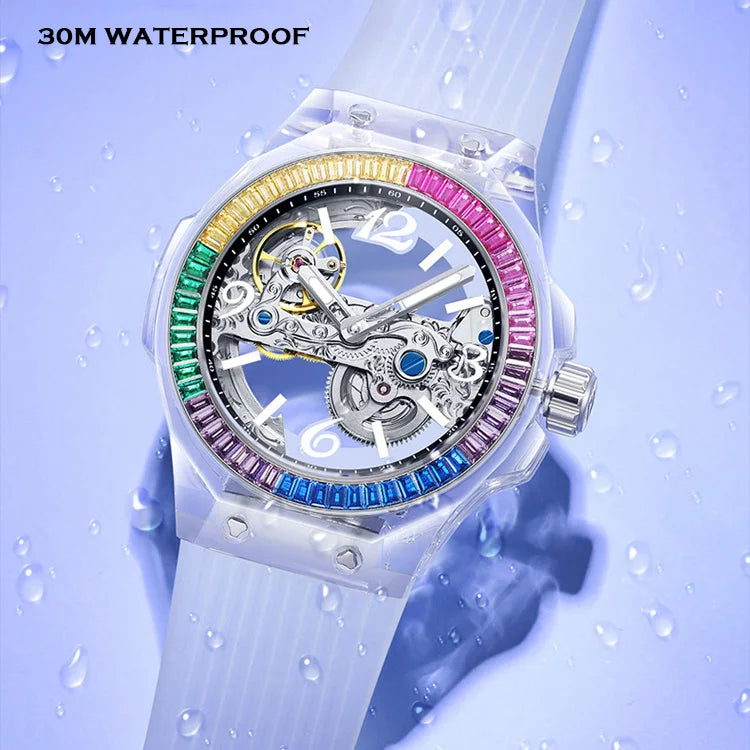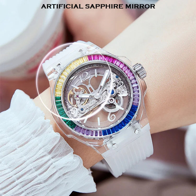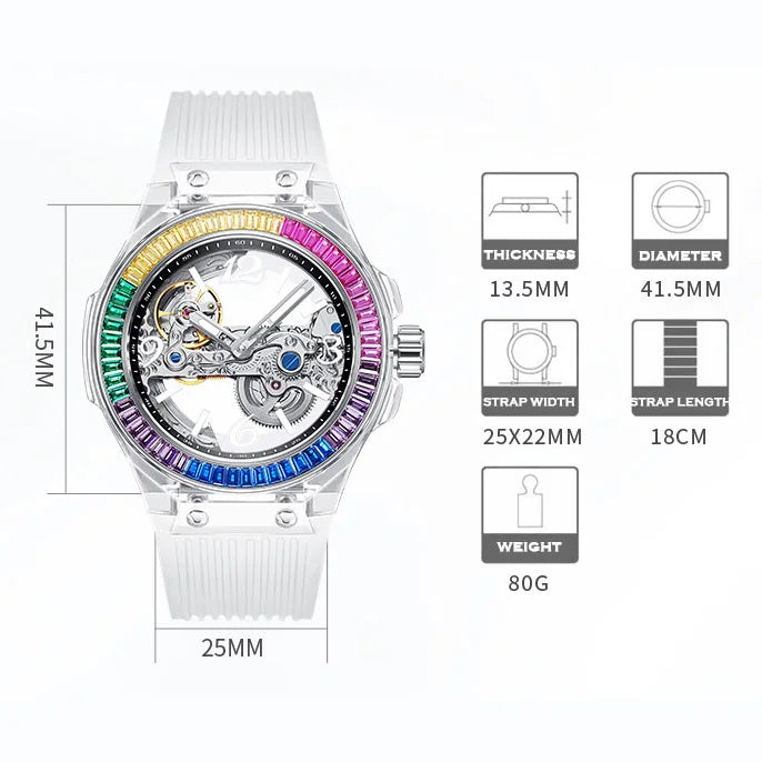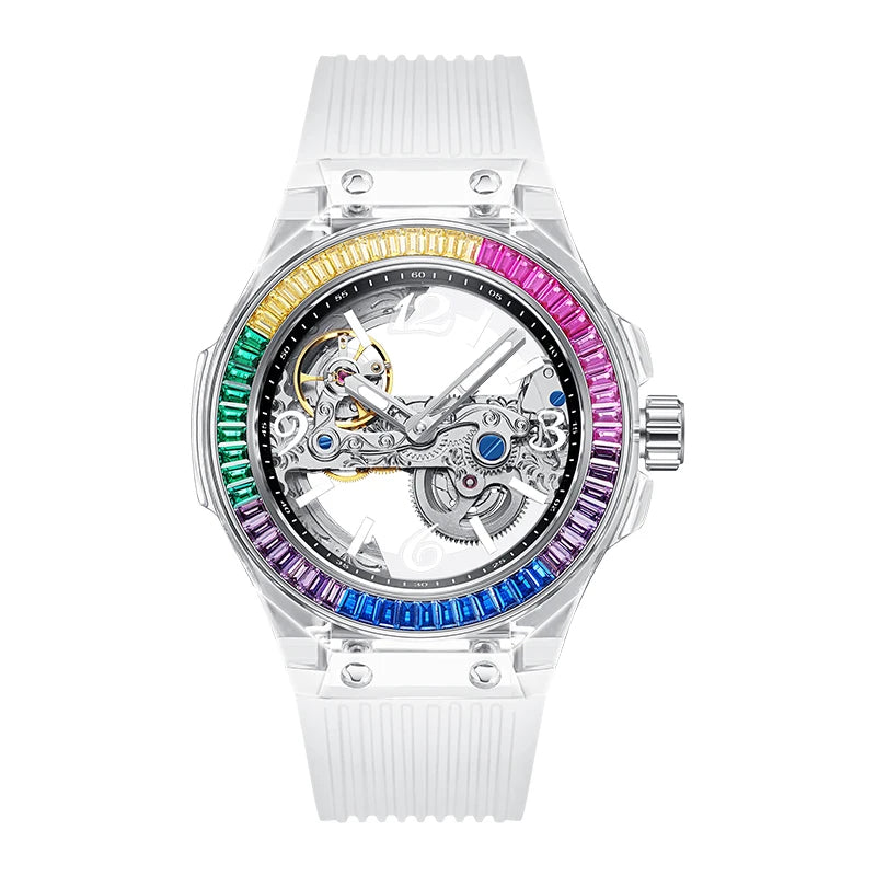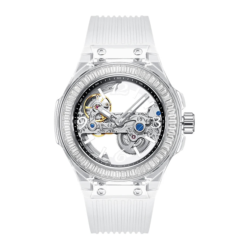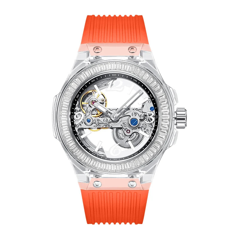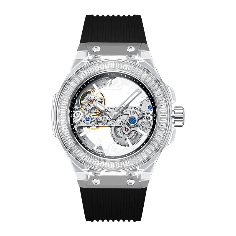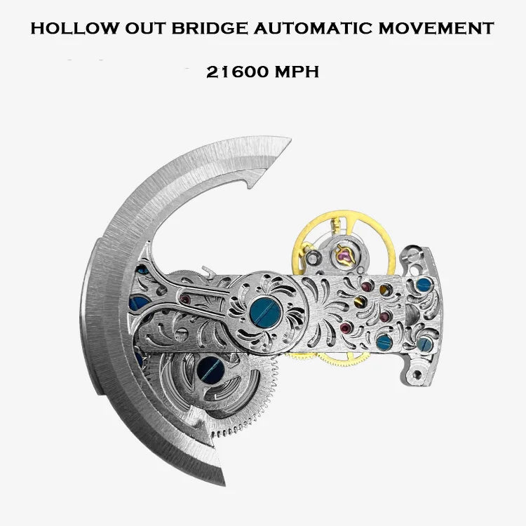 تصميم شفاف يكشف حركة الميكانيزم الأوتوماتيكي الأصلية