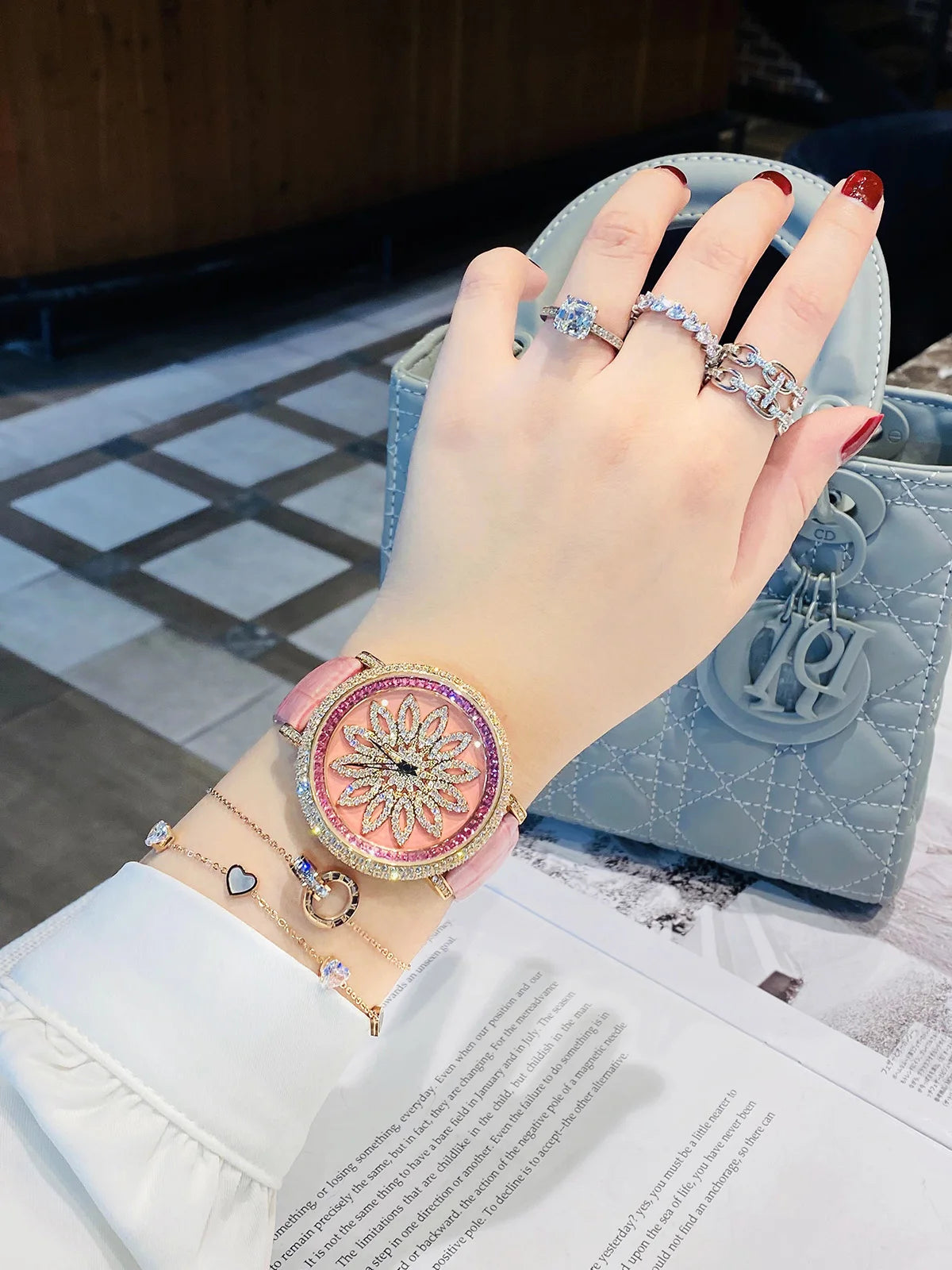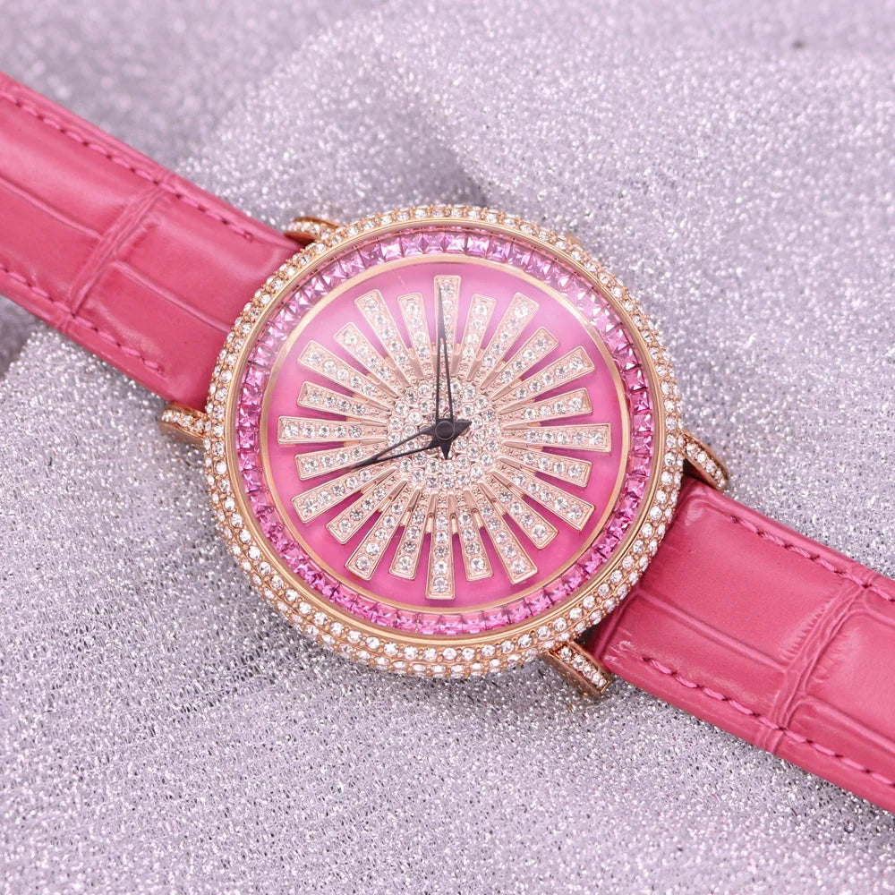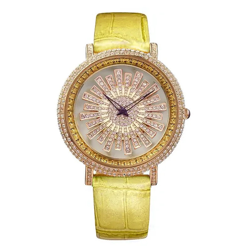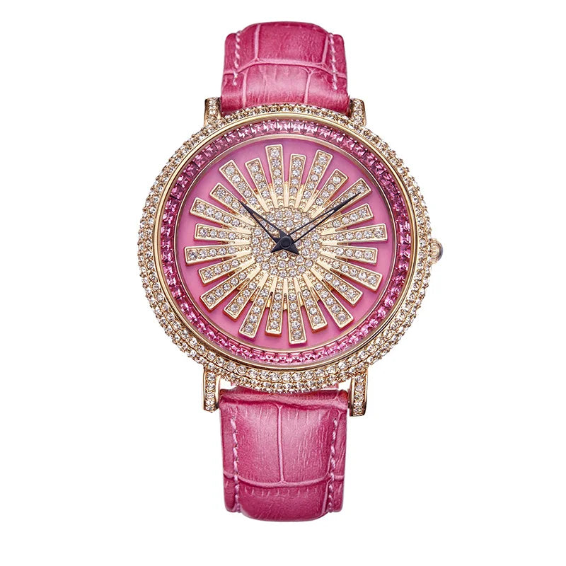 ✨ ساعة نسائية أنيقة تجمع بين الفخامة والستايل العصري، بواجهة لامعة بدون أرقام وسير جلد فاخر. مثالية للإهداء أو الاستخدام اليومي كقطعة أكسسوار ملفته