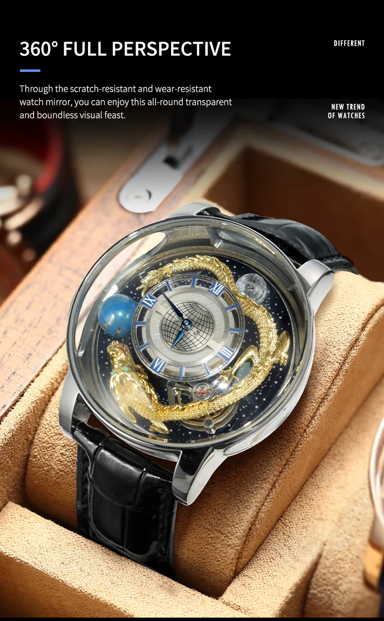 تصميم عصري فاخر بواجهة شفافة تكشف تفاصيل التنين الذهبي بتصميم ثلاثي الأبعاد، تمنحك مظهراً جريئاً وفريداً يلفت الأنظار في كل مناسبة