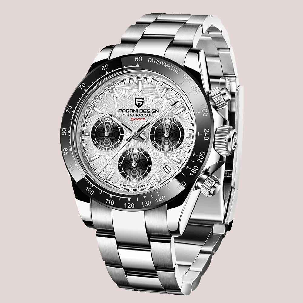 خاصية : تاريخ تلقائي، التقويم الكامل، مقاوم للماء، ساعة إيقاف، الكرونوغراف، السباحه