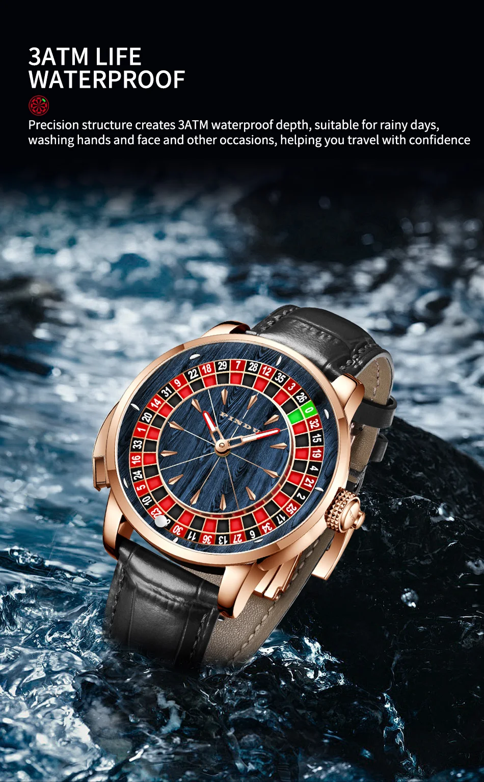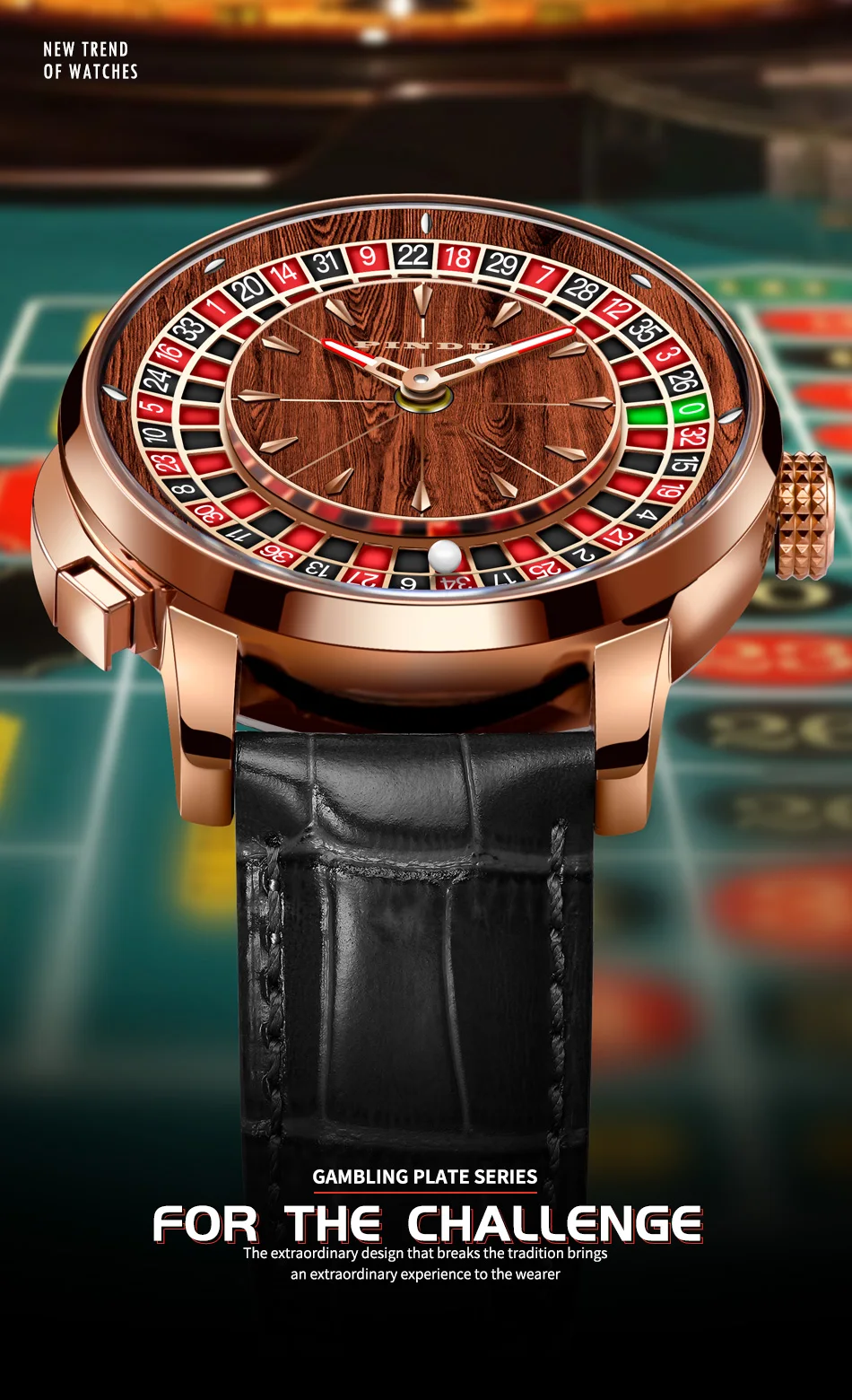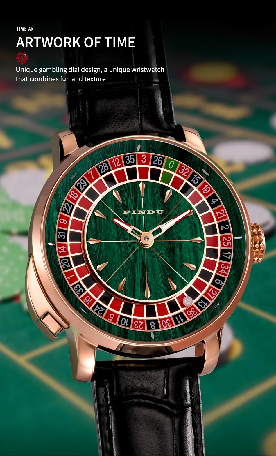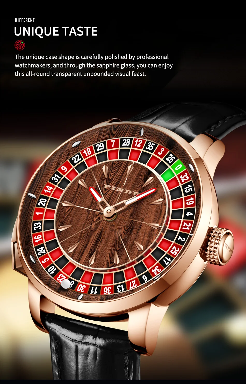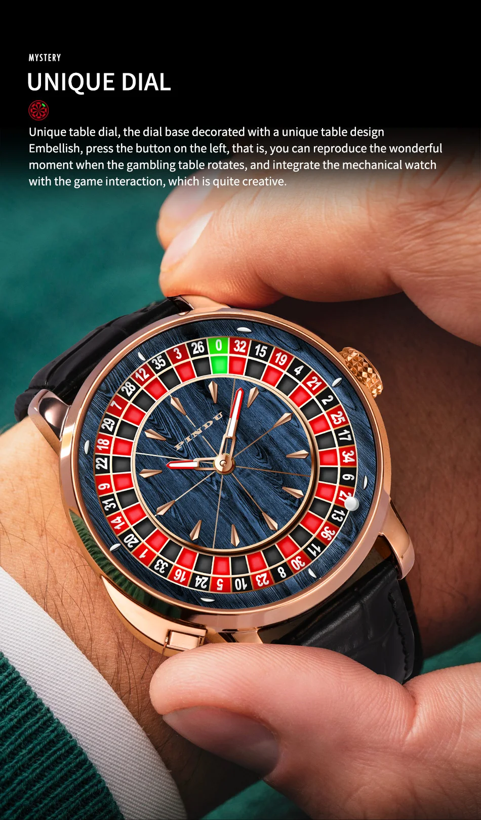ساعة ميكانيكية فخمة تجمع بين الأناقة والمرح، بتصميم مميز يلفت الأنظار وتفاصيل دقيقة تعكس الحرفية العالية