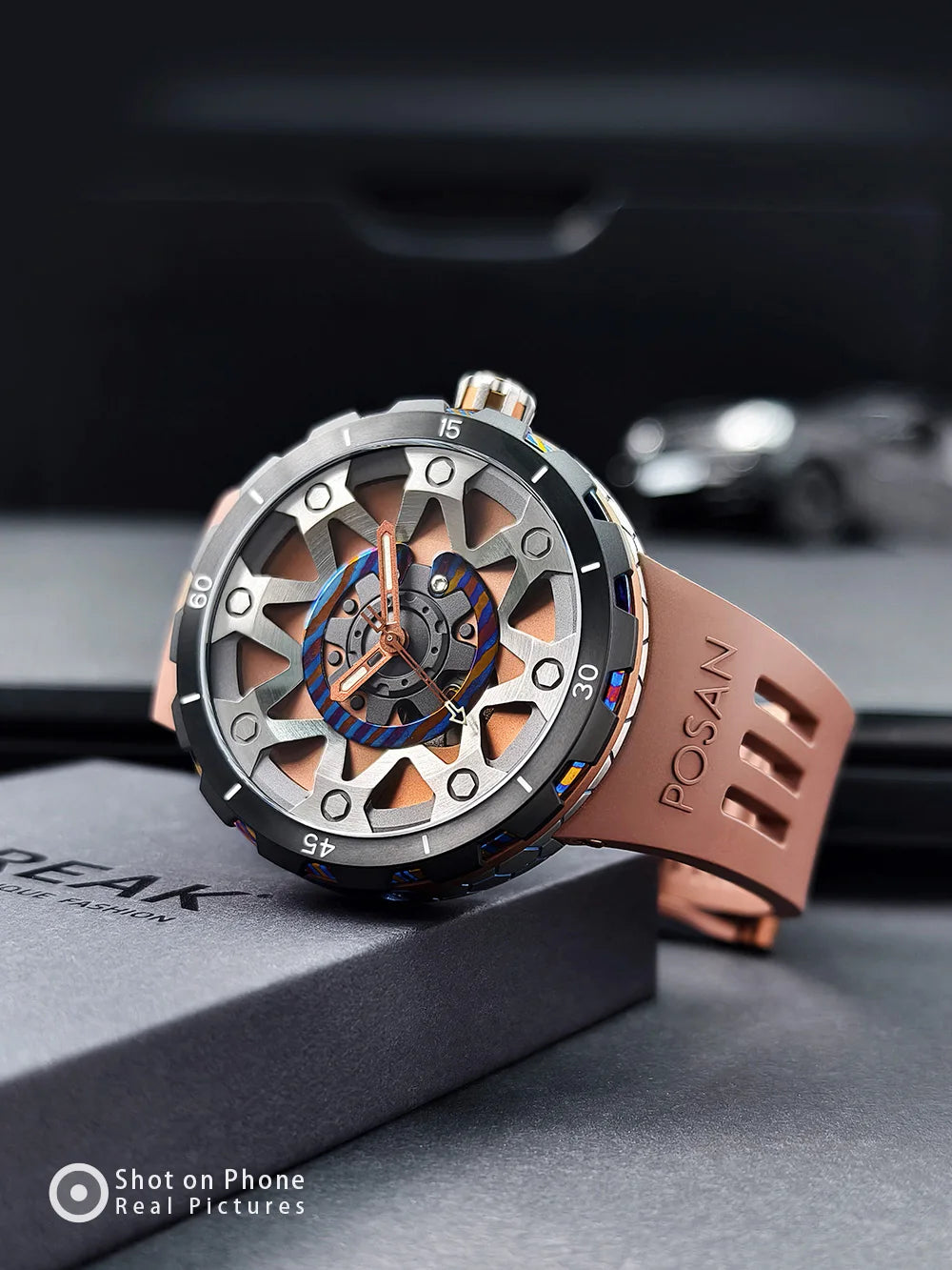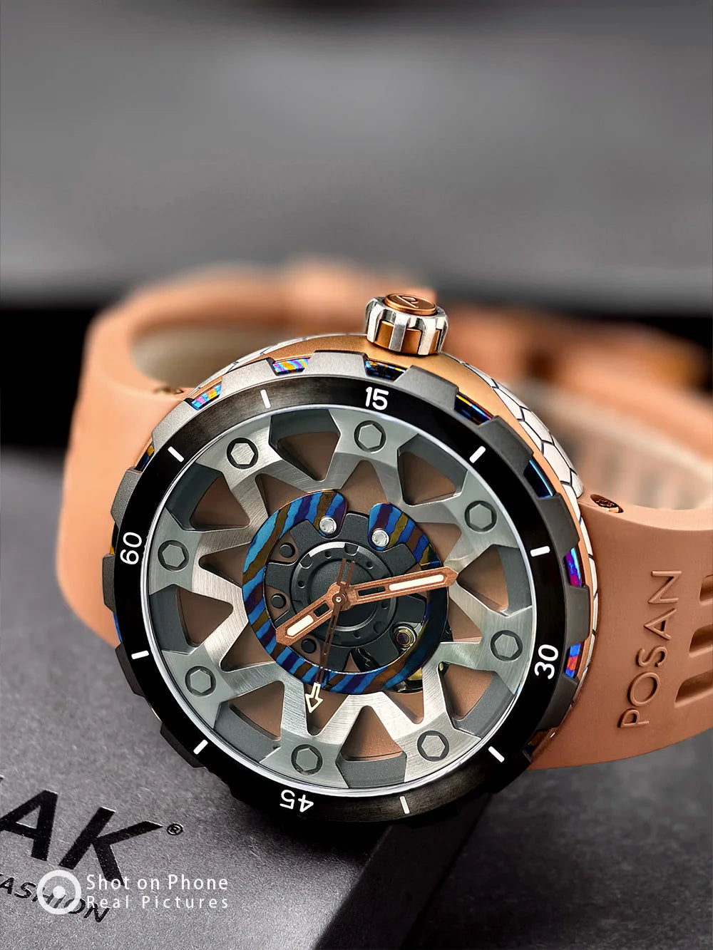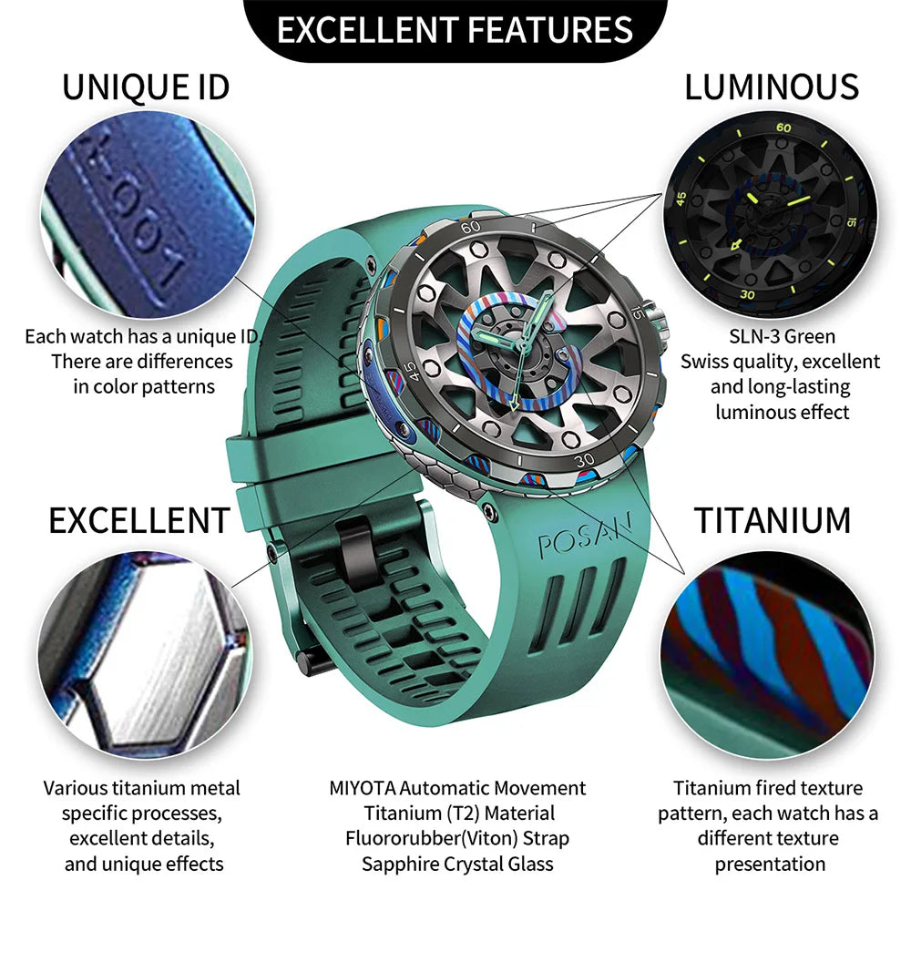 تصميم ثلاثي الألوان بتيتانيوم مزخرف ومطرق – كل ساعة بملمس ولون فريد