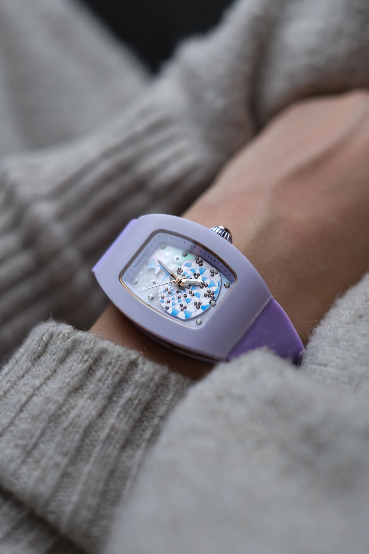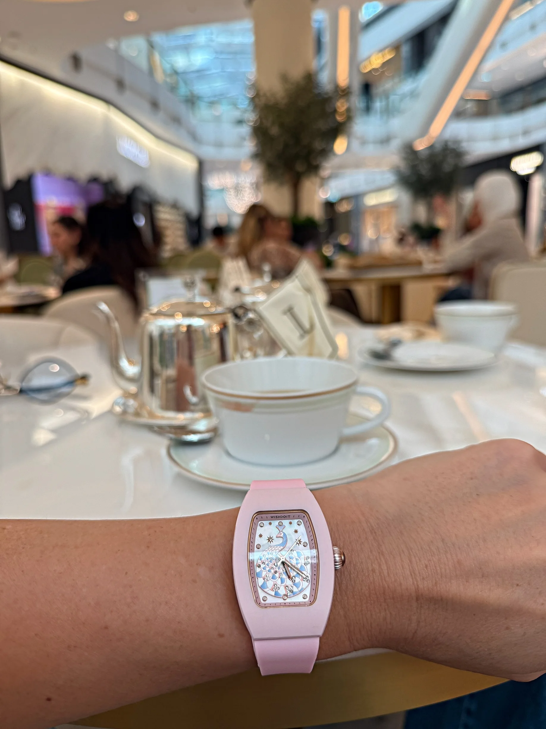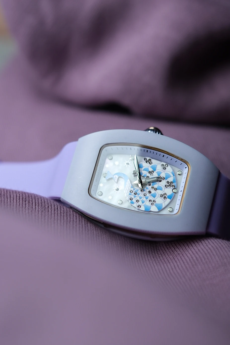 ساعة أنثوية فاخرة بلمسة عصرية، تجمع بين جمال السيراميك الأنيق وحركة الكوارتز اليابانية الدقيقة. تصميمها المميز بدون أرقام مع لمسة الطاووس يمنحك إطلالة راقية تناسب جميع المناسبات، من الاستخدام اليومي وحتى السهرات الخاصة