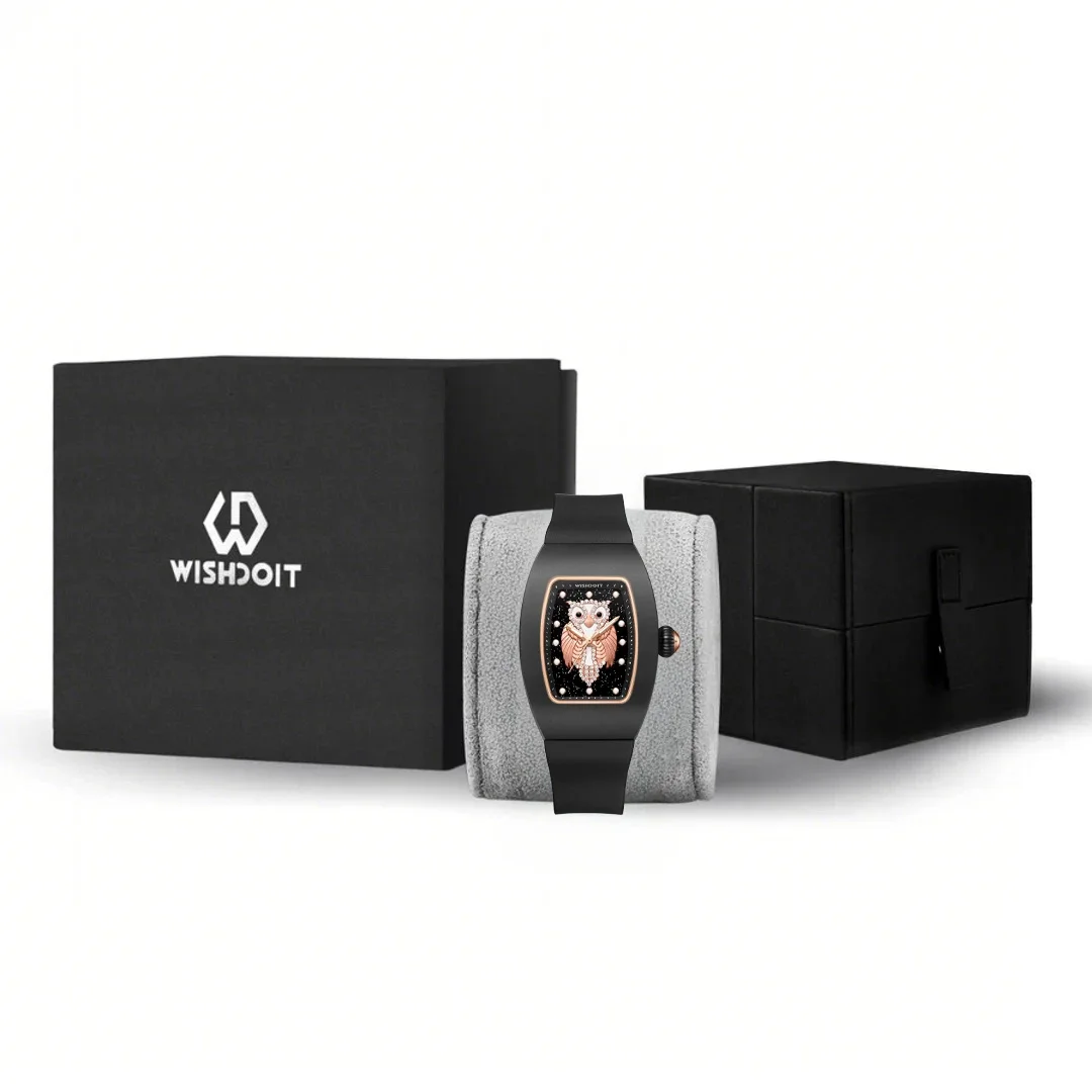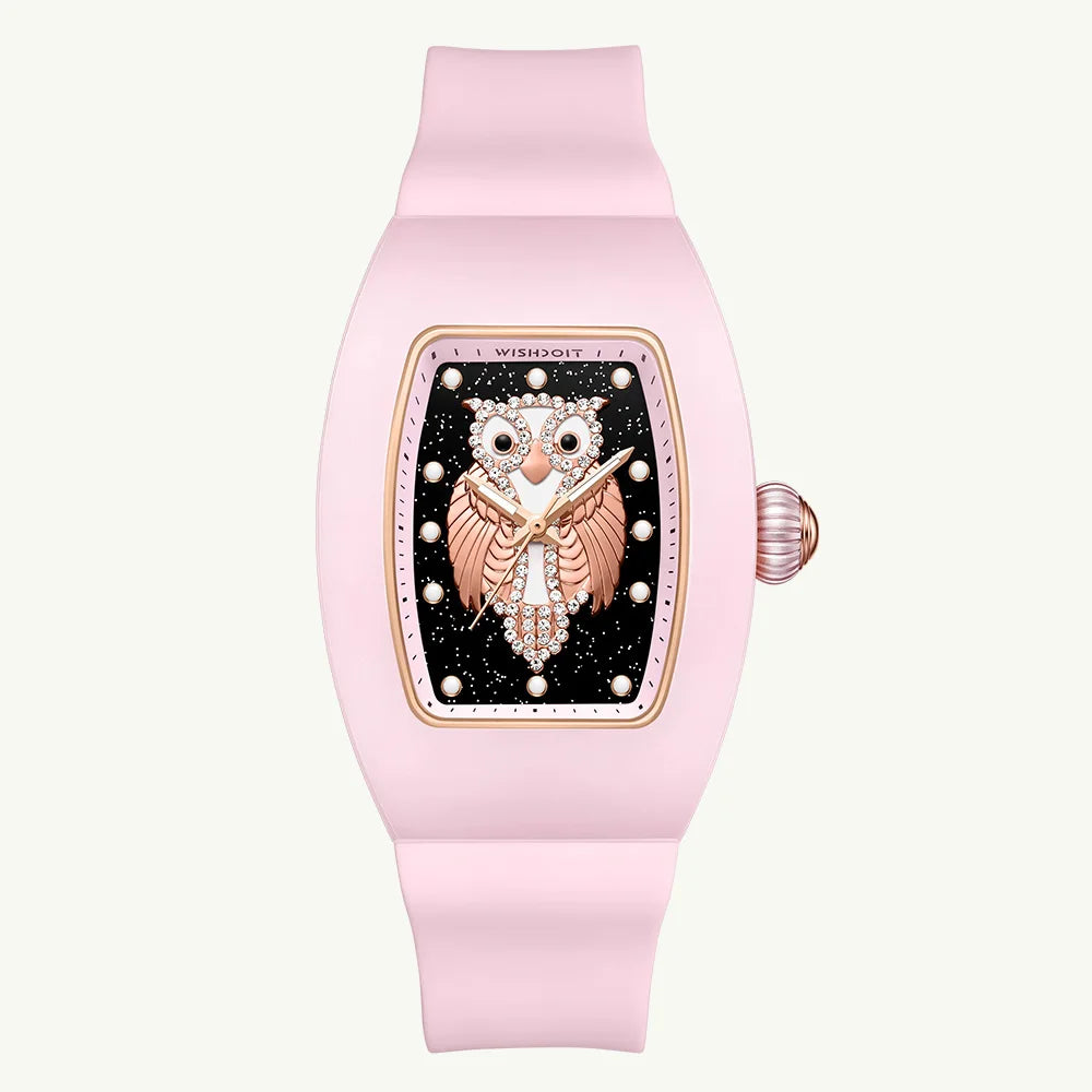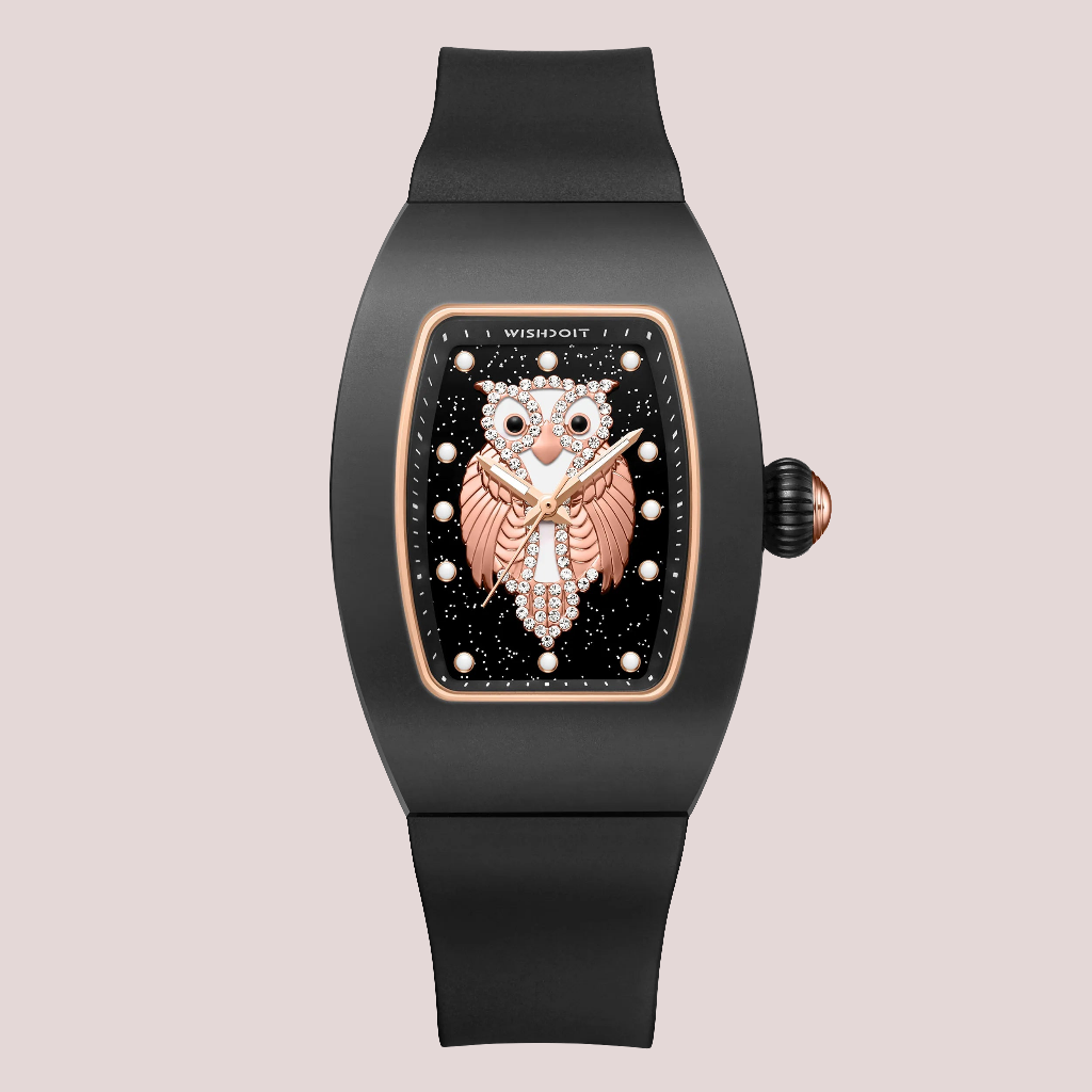 تصميم أنثوي أنيق يجمع بين الفخامة والرمزية، حيث تعكس البومة الحكمة والجاذبية مع لمسة فنية عصرية. مزودة بحركة يابانية دقيقة وزجاج سفير مقاوم للخدوش، لتكون ساعة مثالية للاستخدام اليومي أو كهديّة راقية