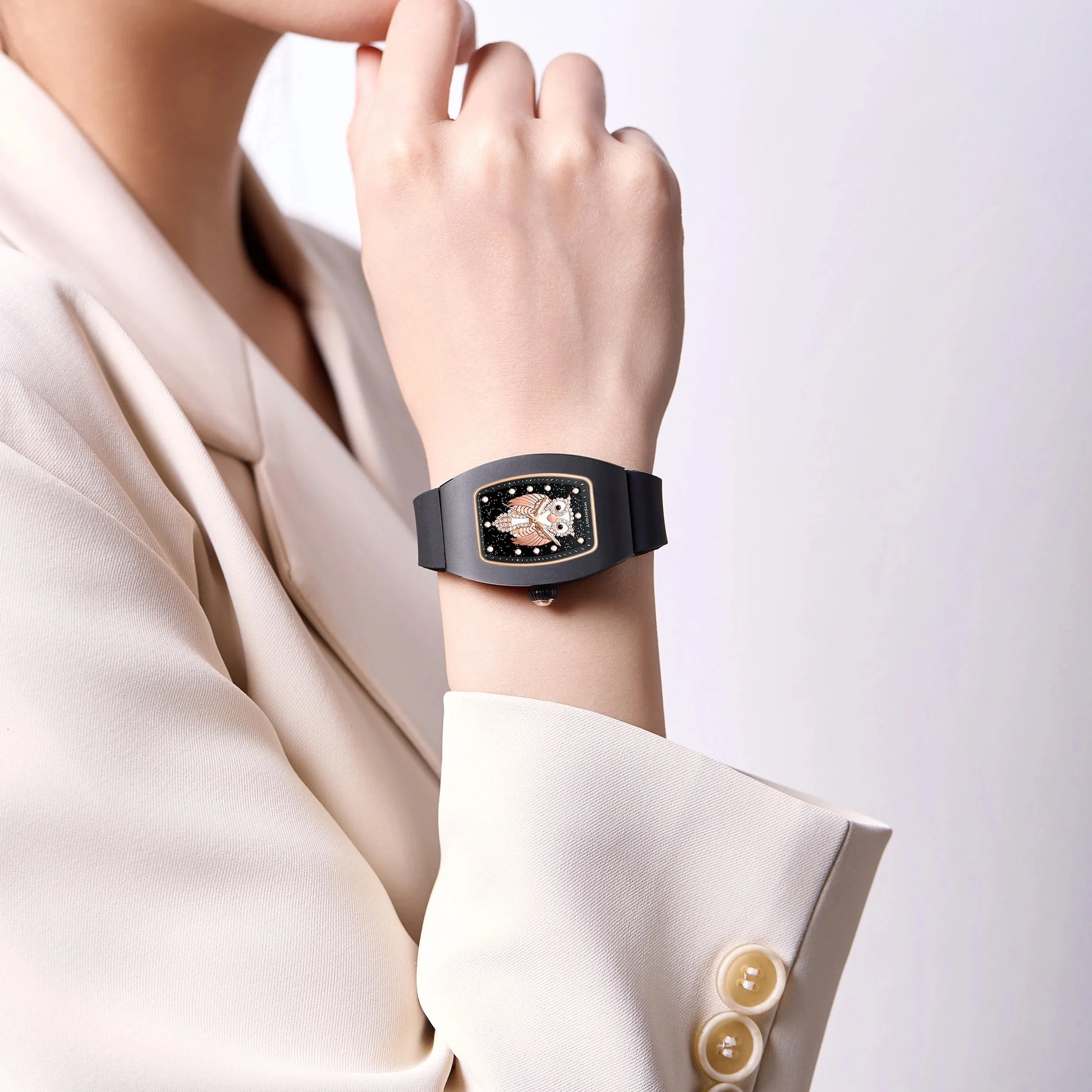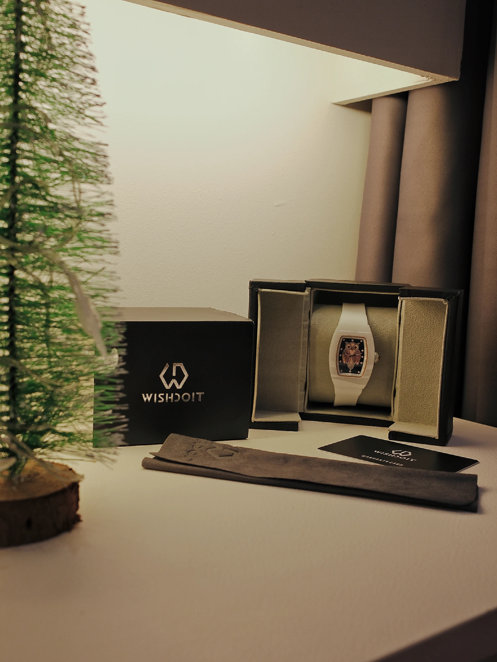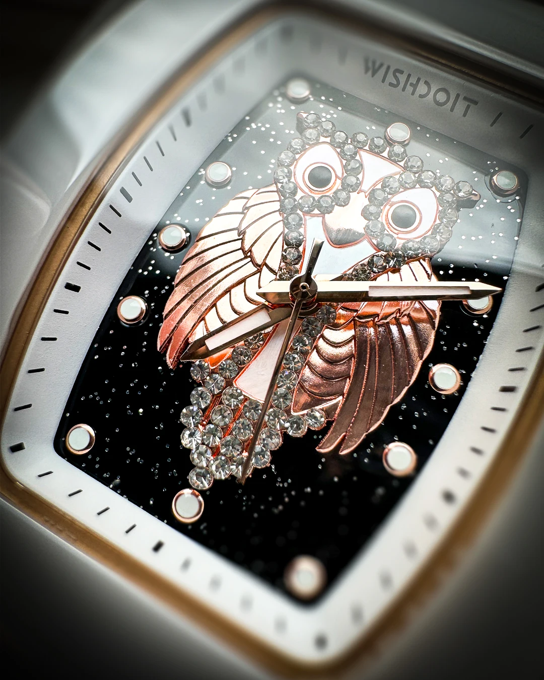 تصميم أنثوي أنيق يجمع بين الفخامة والرمزية، حيث تعكس البومة الحكمة والجاذبية مع لمسة فنية عصرية. مزودة بحركة يابانية دقيقة وزجاج سفير مقاوم للخدوش، لتكون ساعة مثالية للاستخدام اليومي أو كهديّة راقية